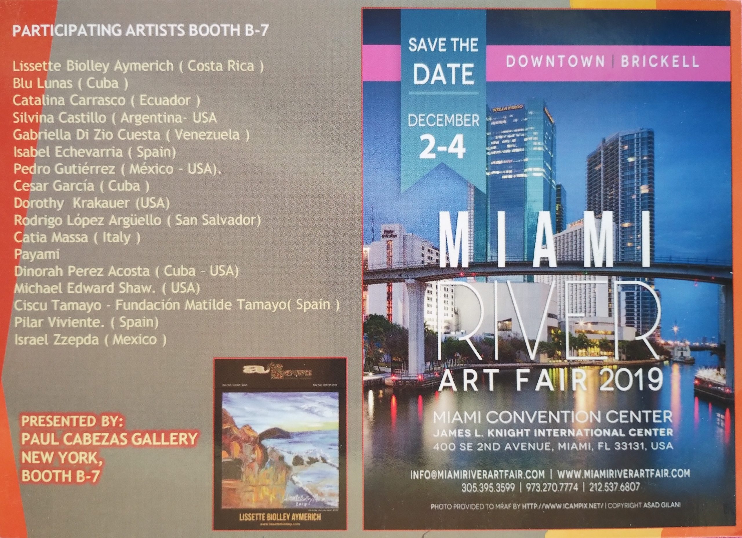 Participación en el año 2019 en una de las ferias de arte más reconocidas MIAMI RIVER ART FEST, Estados Unidos de América